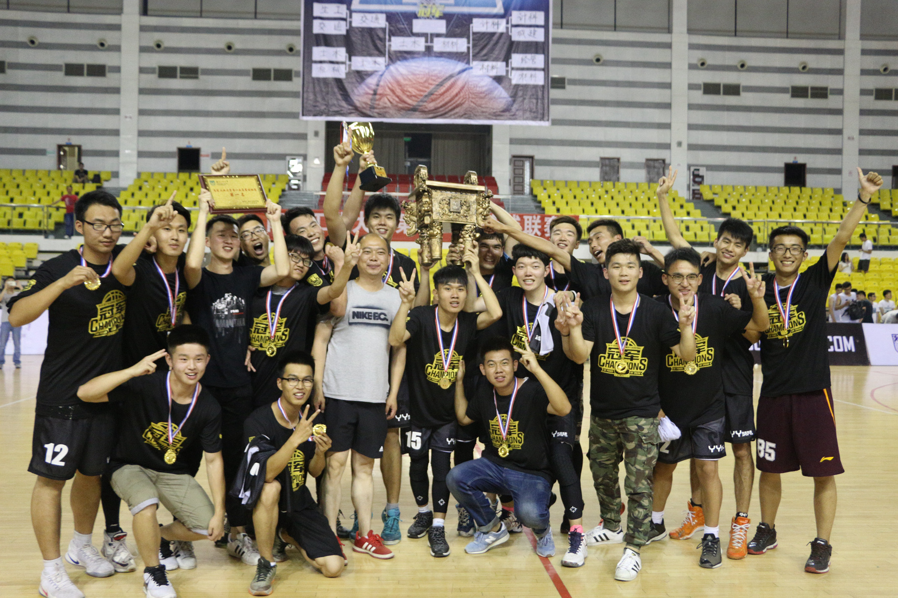 经过小组赛和淘汰赛的激烈角逐,材料科学与工程学院和土木工程学院力克群雄,进行最终决赛的较量。比赛开始一分钟,材料科学与工程学院率先投进本场第一个球,而土木工程学院也毫不示弱,随后将比分反超。第一节土木工程学院以9分优势结束。第二节比赛材料院调整战术,逐渐将比分拉小,此时双方球员状态也渐渐进入佳境,比分一直平分僵持不下。第三节材料院强势进攻,逐渐掌握的局势,最后取得了8分的优势。第四节比赛开始土木力挽狂澜,逐渐把比分拉平。比赛进入加时赛,双方毫不退让,比赛再次以平分结束。进入第二轮加时赛,双方依旧不甘示弱。关键时刻,土木院投进一个三分球赢得比分优势,紧接着又一个完美断球后快攻得分成功。最终,土木工程学院以69:65的比分赢得本篮球联赛冠军。