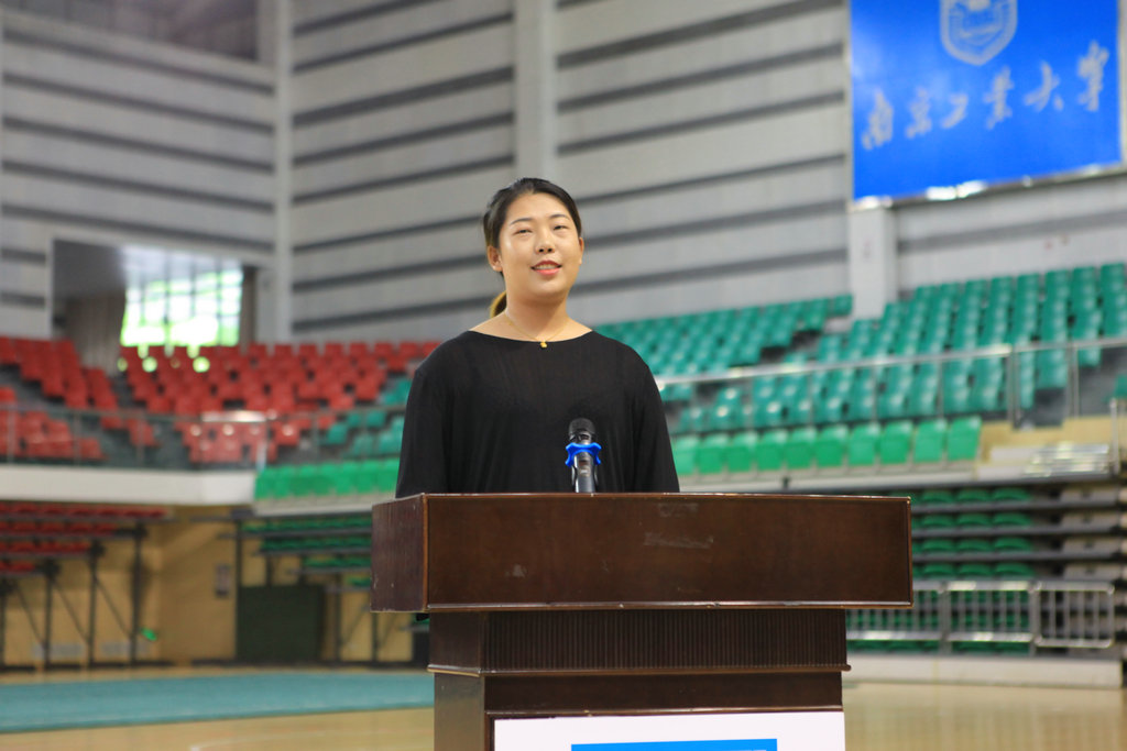 校垒球队孙秦烨同学作为毕业生代表发言。她在发言中深情地回顾了大学四年自己的得失、成长和收获,表达了对学校、体育部和教练员的感激和惜别之情,也对学弟学妹们送上了临别赠言,希望大家为南京工业大学争光,用努力回报社会,回报母校。