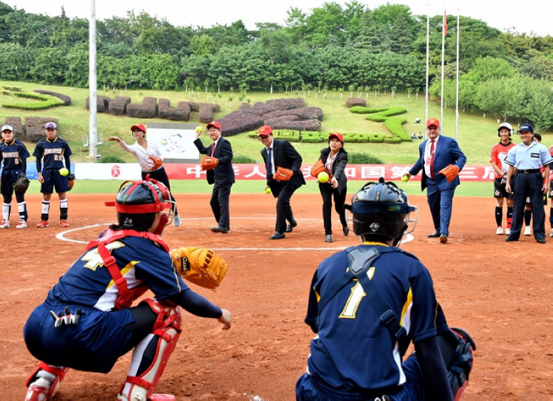 5月16日下午17:00,在江苏队—香港队的正式比赛之前,在江浦校区垒球场举行了隆重的开球仪式。国际棒垒球联合会主席Fraccari Riccardo、秘书长Benchoo Low,国家体育总局手曲棒垒球运动管理中心副主任谈莺,江苏省体育局局长陈刚、江苏省教育厅体卫艺教处处长张鲤鲤,学校领导芮鸿岩、朱跃钊、崔益虎等应邀出席仪式。