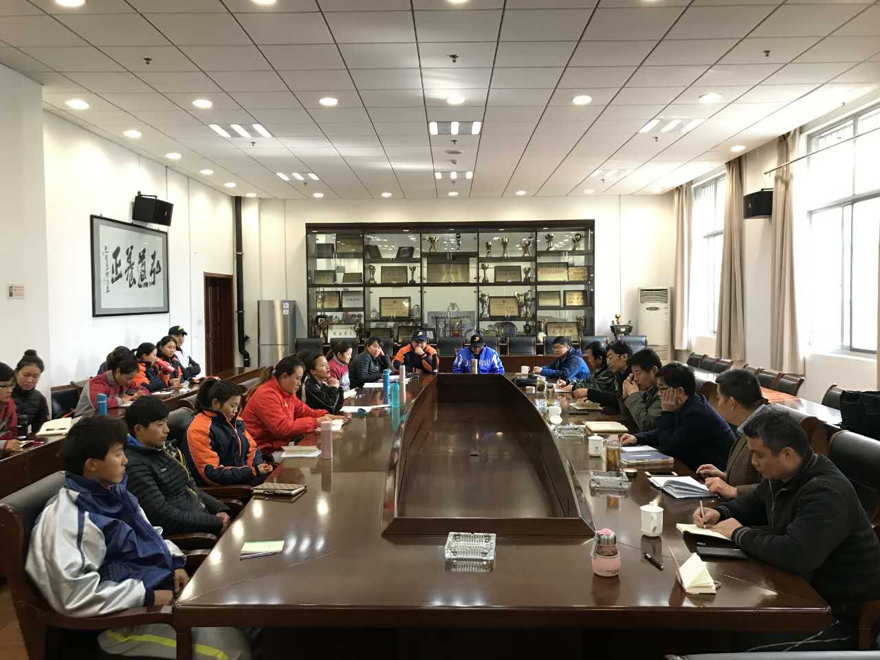 3月21日上午,在南京工业大学江浦校区,南工江苏女垒召开了2017年冬训及锦标赛总结大会暨备战十三届全运会预赛动员会。省手曲棒垒中心主任严小平,常州市专管中心主任姚治前,校体育部主任张天峰,江苏女垒主教练宋秋元,教练员周育红,副领队刘峰、李海兵,江苏女垒队务贡新烨及江苏女垒所有队员参加了会议。会议由校体育部主任张天峰同志主持。