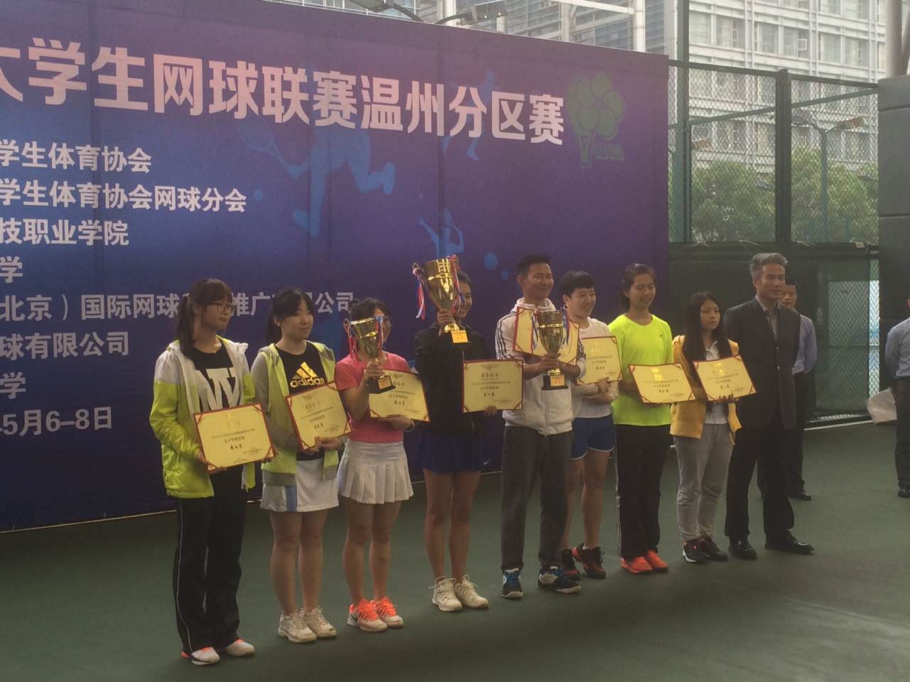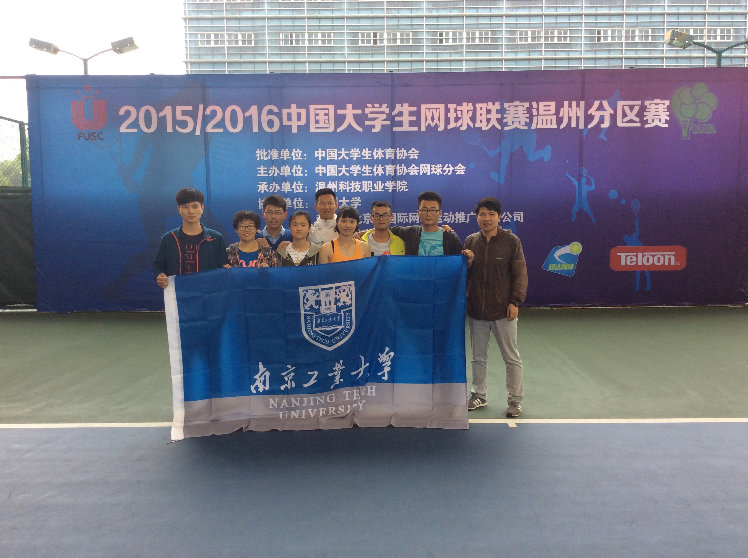 2015—2016中国大学生网球联赛温州分区赛于5月7日在温州大学拉开赛幕。此次比赛汇聚了上海交通大学、浙江大学、苏州大学等来自长三角地区的28所高校的59支运动队参赛,是历届分区赛中参赛学校数量,参赛队伍数量最多比赛。我校此次也派出了由体育部老师张涛、孙景召共同率队,7名同学组成的南京工业大学网球队分别参加男、女甲组的团体赛。