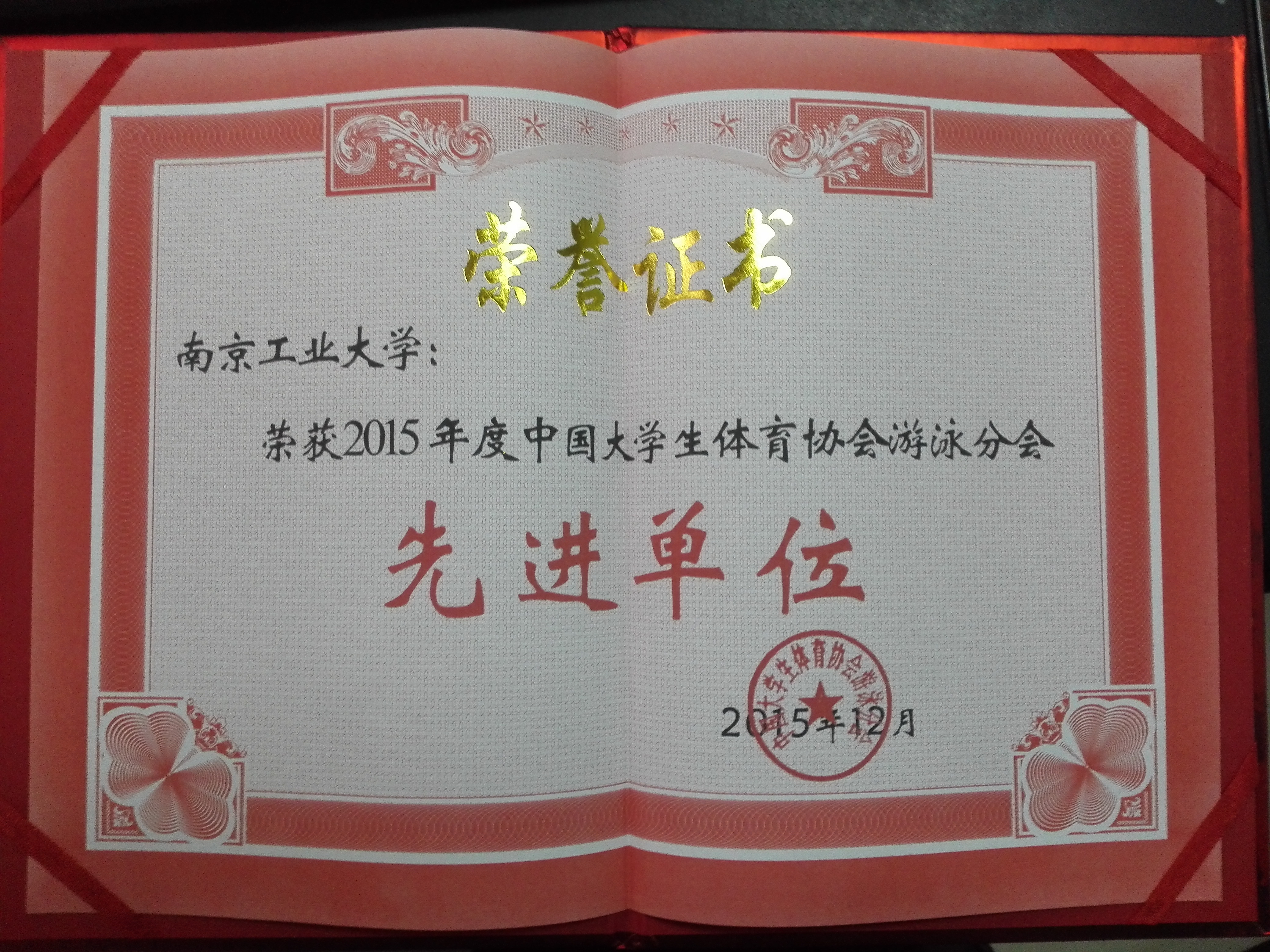 2016年1月8日至10日,中国大学生体育协会游泳分会年会在中国地质大学举办。我校体育部侯桂明副主任和车益民老师应邀参加。会议对协会的2015年度工作进行总结,讨论和商议了2016年工作计划,并对在2015年度协会工作中表现出色单位进行表彰。南京工业大学被授予“先进单位”。