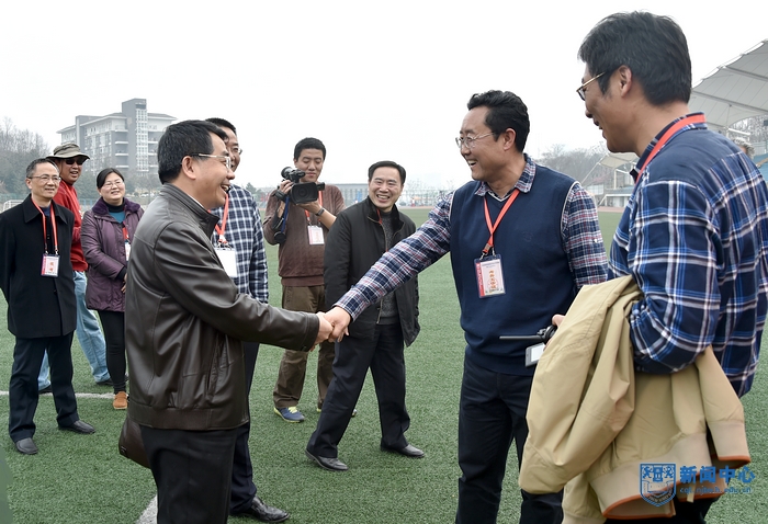 校长黄维院士热情接待了苏厅长一行,感谢教育厅考试院长期以来对我校的关心和支持。黄校长亲临测试现场,当得知有位湖北考生已拿到华中科技大学一级公示资格仍然选择到南工进行测试时,甚感欣慰。黄校长指出,我校的体育文化已在全国具有了一定的知名度,后期要进一步以我校获得第十二届全运会垒球冠军为宣传点,采取更加优惠的政策加大对优秀考生的吸引力度。还要以我校中国棒垒球学院建设为推手,加大高水平师资引进工作,进一步为人才培养奠定基础。此外,黄校长还对学校体育工作的软硬件建设提出了要求,要提高办赛水平,推进科学化管理。