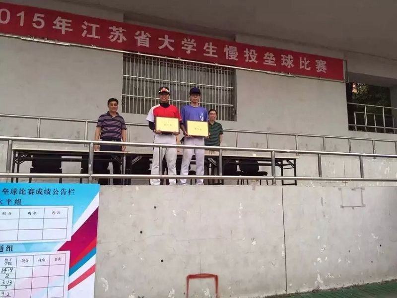 这次比赛有三个组别:甲A组(本科高水平组)、甲B组(本科普通组)、乙组(普通高职高专学校)。我校大学生棒垒球队在领队候桂明副主任,教练蔡协清、王宏斌带领下,参加了本次高水平组的比赛。运动员在比赛中冒着酷暑,努力拼搏,顽强作战,发扬我校体育精神,打出水平,赛出风格,分别以11:0和10:0的大比分战胜了南京体育部队,从而获得本次江苏省大学生慢投垒球比赛高水平组冠军,我校棒垒球队队员朱琳、费翎因表现突出获得了“道德风尚奖”。充分地展示了南工学子的风采,为学校争光。