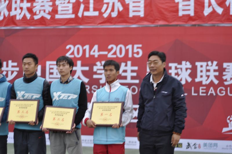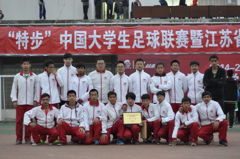 11月18日下午,我校大学生男子足球队在主教练成一祥老师率领下,参加在了江苏省高校“省长杯”足球赛比赛,在决赛中,全体队员敢于拼搏,充分地发挥了团队配合和协作精神,最终获得了江苏省高校“省长杯”足球赛冠军,并第一次代表江苏高校参加全国高校足球联赛,这是创造了我校大学生男子足球队建队以来的最好成绩,让我们向足球队全体队员和教练员表示祝贺!(来自体育部)