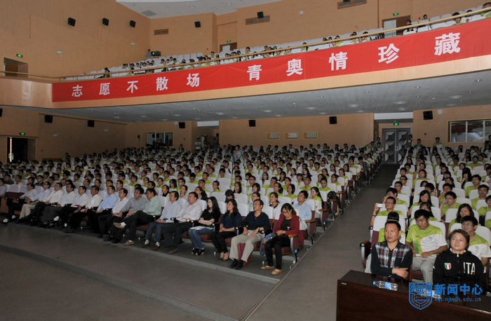 10月9日下午,我校青奥会志愿服务工作总结表彰大会在江浦校区大礼堂隆重举行。校党委书记王德明,南京团市委书记、青奥组委志愿者部部长单晓峰,校党委常委、副校长崔益虎,鼓楼团区委书记、青奥组委志愿者部部长助理樊向前,校党委宣传部部长张健,教务处处长张广明,学生处处长郭万牛,体育部主任张天峰,校团委书记刘大卫,党委办公室副主任黄锁明,总务处副处长吴贵明,后勤集团总经理助理张霍胜以及各学院党委副书记、团委书记出席大会。