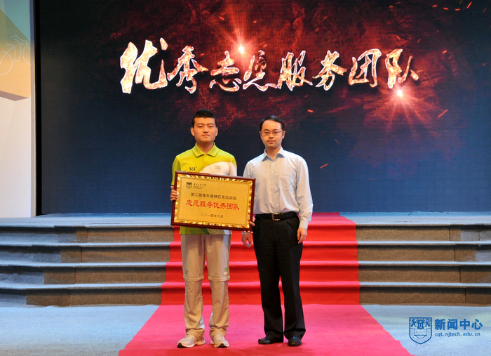 南京团市委书记、青奥组委志愿者部部长单晓峰宣读志愿服务优秀团队颁奖词。