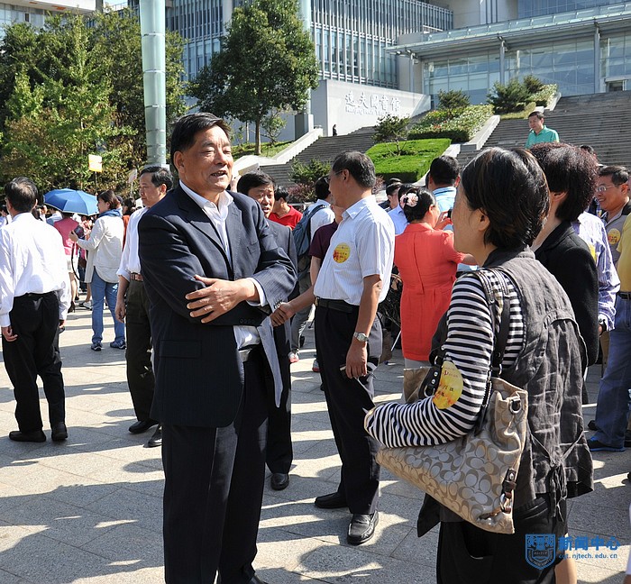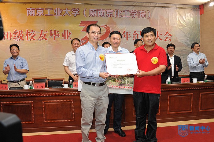 最后,王德明书记讲话。在举国欢庆中华人民共和国成立65周年之际,校友们能欢聚母校,王书记认为这是对祖国的喝彩,是对自己人生的喝彩,是对母校的喝彩。王书记与校友们共同回顾了母校合并组建南京工业大学的伟大创举,向校友们介绍了学校在历届领导的团结一致、艰苦奋斗的带领下正焕发的新姿态,向校友们汇报了学校现在所取得的重大突破——国家“2011协同创新中心”之一。回顾学校多年的发展历程,王书记向校友们分享了三点体会:树立机遇意识,走自力更生之路。强化协同意识,走自助创新之路。坚持开放意识,走特色发展之路。学校在有限的资源条件下,艰苦奋斗、追求卓越、审时度势、敢为人先,抢抓重大机遇,拓展办学空间和规模;集聚校内优质创新元素,发挥学术大师引领作用,培育了一批高峰人才、优势学科和高端创新平台,建立了一条从基础研究——共性技术研究——科技成果化——产业孵化的创新链,形成了以五位院士领衔的高水平师资队伍,建成了国家一级重点学科、材料化学国家重点实验室、国家生化工程技术研究中心、国家特种分离膜工程研究中心、国家大学科技园、国家级协同创新中心等国字头学科、科研平台;紧贴国家和区域发展重大战略需求,积极服务于创新型国家和创新型省份建设,坚持顶天立地、特色发展的理念,加强和拓展社会服务功能,促进了学科、科研、人才的有效互动,人才培养质量不断得到确保,学校服务行业和区域经济转型升级的特色办学品牌已经形成。