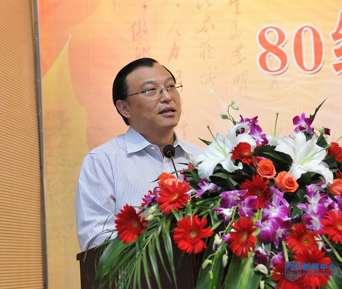 党委书记王德明在讲话中指出,学校的建设和发展始终得到广大校友和社会各界人士的关心和支持,母校昨日的成功、今日的辉煌、明日的发展都离不开校友们的关怀和帮助!