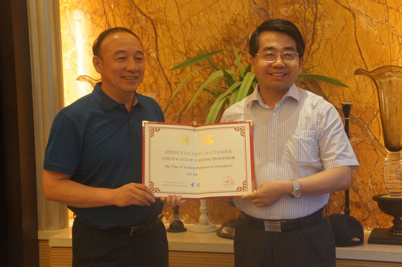 8月26日下午,在南京青奥会即将顺利闭幕之际,校长黄维院士在江苏省体育局副局长杨国庆先生陪同下,会见了正在南京观摩青奥会赛事的国家体育总局手曲棒垒中心主任雷军,并以简朴的仪式聘请他为我校客座教授,黄维校长亲自为雷军主任颁发了聘书。