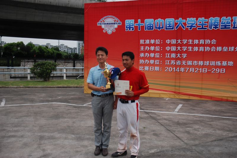 7月21日,“2014年第十届中国大学生棒垒球联赛棒球总决赛”在无锡的江南大学拉开了帷幕。共有来自北京、上海、天津、广东、新疆、江苏、香港等省市区的32所高校的550余名运动员参赛。我校大学生棒球队在领队陈军老师、教练周华卫老师的率领下,参加了本次比赛。与我校同在高水平组的有:江南大学队、华东政法大学队、上海外国语大学队、北方工业大学队以及厦门大学队,都为实力不俗的强队。