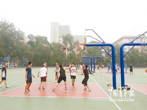 7月17日,中国地质大学篮球场上打球的本校学生和校外群众。本报记者 慈鑫 摄