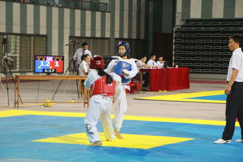 7月7日,我校有三名运动员参加了比赛,分别是男子组60公斤级史浚男,女子组57公斤级张林, 女子组加67公斤级赵立。男子组60公斤级史浚男实力强,是我校主力队员,教练赋予他很高期望。在比赛中,史浚男打出了实力,连连得分击溃对手,顺利进入决赛。在决赛中,由于史浚男在之前的比赛中眼睛被踢伤,影响了他的正常发挥,李教练担心他的安全最终放弃了比赛,史浚男获得亚军。两名女运动员都顺利晋级,在半决赛中均遗憾负于对手,获得第三名。