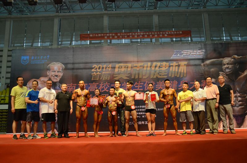 由南京工业大学健美协会主办,南京工业大学体育部指导、北京化工大学健美协会、奥利健营养中心协办的“2014年首届奥利健杯南京高校大学生健美健身大赛暨全国大学生健美健身邀请赛”,于5月31日在我校举行,经过一天紧张比赛,百余名当代大学生美女“肌肉男”尽展风采,圆满地在我校落幕。