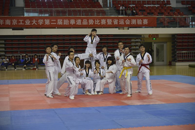 品势比赛中,各学院代表队各有各的特点,有的是采用跆拳舞形式,有的是将品势和中国武术相结合,还有的是把品势与跆拳道实战相结合。各种形式品势表演,不仅体现了各代表队的特点,而且展现了跆拳道运动的多样性。运动员的动作跟着音乐、整齐、有力,时不时还有响亮的发声。新颖的构思,整齐有力的动作征服了在场的观众,也征服了评委。跆拳道品势可以让人静心静气,锻炼意志,一招一式彰显了跆拳道魅力。运动员经过练习和比赛不仅领会了跆拳道品势动作要领,在精神意志方面也有很大提高。在排练动作同时,提高了创新能力和团队协作能力,这是除了比赛之外带给运动员的收获。经过激烈角逐,各个大项决出了一、二、三等奖,各获奖代表队和颁奖老师合影留念。