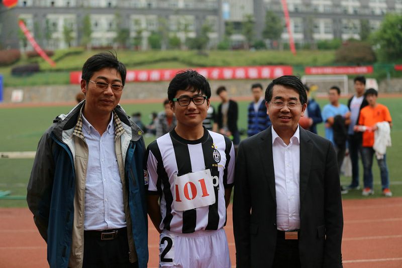 黄校长看到赛场看台上的同学们正积极地为运动员加油和助威,主动上了看台,向同学们问候。走到交通院观众席时,与学生们一一握手,亲切交谈并合影留念。交谈过程中他始终面带微笑,显得和蔼可亲,看到同学们脸上印着交通院的图标,听到他们整齐洪亮的呐喊助威声和响彻的锣鼓声,校长感到十分高兴。他向同学们提出希望今后运动会能增加吉祥物表演的宝贵建议。当黄校长离开时,同学们报以热烈的掌声与欢呼声为之送行。(来自体育部)