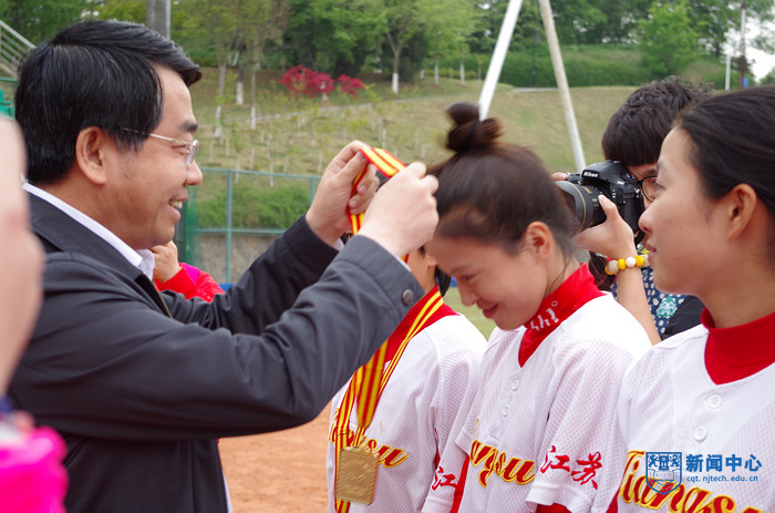 经过五天激烈角逐,比赛于4月15日下午四点胜利闭幕。国际垒联副主席、中国垒球协会副主席、国家体育总局手曲棒垒球中心副主任谈莺,中国科学院院士、校长黄维,中国垒球协会副主席、校党委副书记、纪委书记朱跃钊,校长助理、校办主任何学军,江苏省体育局手曲棒垒球中心主任、竞技体育处副处长严小平,国家体育总局手曲棒垒球中心垒球部主任杨旭,校体育部主任张天峰等出席颁奖仪式。
