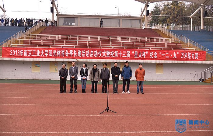 12月15日上午九点半,由校体育部、校团委主办,机械学院分团委承办的校大学生阳光体育冬季长跑活动启动仪式暨第十三届“星火杯”纪念“一二·九”万米接力赛在江浦校区田径场举行,共来自于我校的21个学院近1000名学生参加了启动仪式,500名运动员参加了接力比赛。出席本次活动领导有:校党委常委、副校长崔益虎教授,校党委常委、副校长张进明教授,校学生工作处处长郭万牛研究员,校团委书记刘大卫,体育部党总支书记陈建华,体育部主任张天峰,副主任孙欣荣,机械学院党委书记戴宏,副书记孙宇等。启动仪式由机械学院党委副书记孙宇主持。