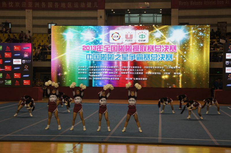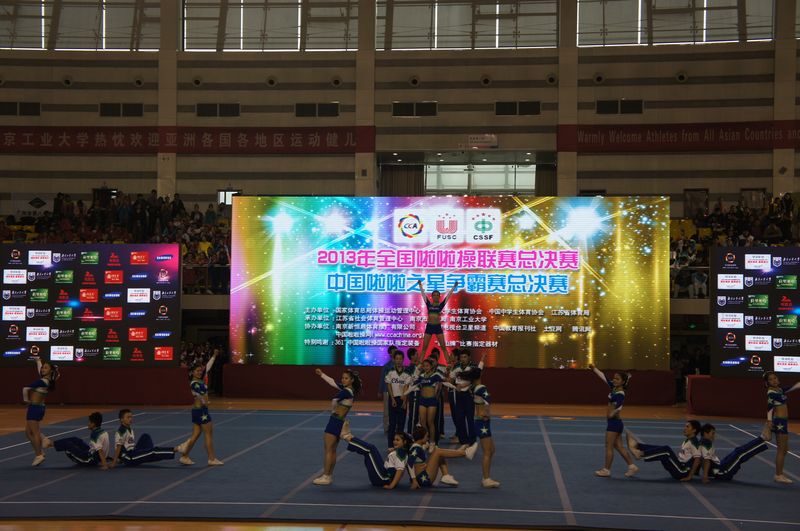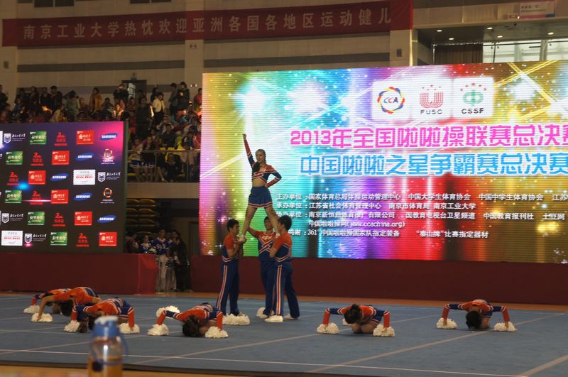 由国家体育总局体操运动管理中心、教育部大学生体育协会、中学生体育协会、南京市人民政府联合主办,南京市体育局、全国啦啦操竞赛委员会承办,南京市健美健美操运动协会、南京工业大学等协办的“2013年全国啦啦操联赛(总决赛)暨2013年“中国啦啦之星”争霸赛总决赛,于11月27日至29日,在我校江浦校区体育馆盛大开幕,来自全国各地四千余名运动员、教练员参加本次比赛。这是一次体育的盛会,也是南工大人的节日,欢迎广大师生前往观看比赛,为各支代表队加油、鼓劲。(来自体育部)