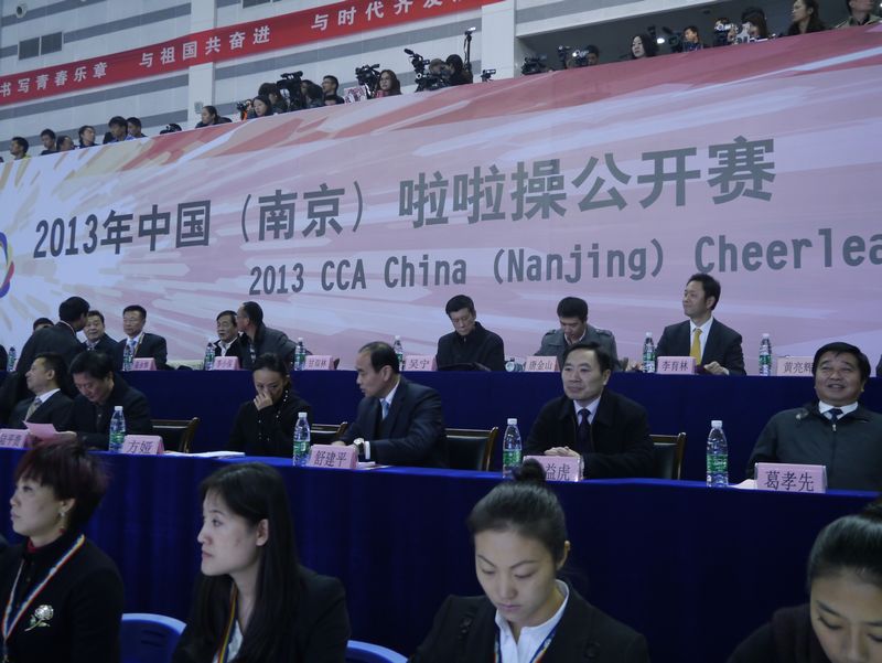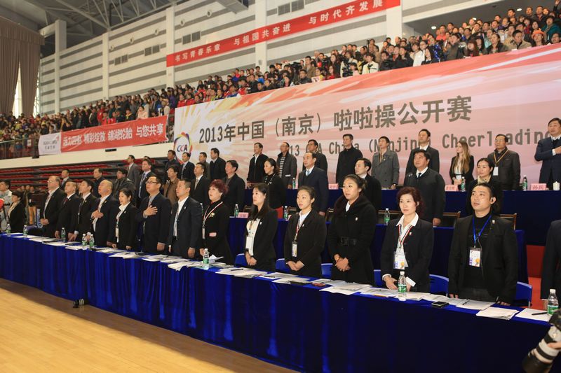 简短开幕式后,进行了精彩的比赛,共有来自中国、美国、澳大利亚、德国、韩国、新加坡、马来西亚、菲律宾、中华台北等九个国家和地区的300多名运动员参加比赛。经过近二个小时比赛,决出了名次。公开组集体花球前三名是,南京市啦啦操队、成都体育部、天津体育部。公开组集体爵士前三名是,美国、华东师范大学、北京体育部。混合双人配合技巧前三名是,美国、德国、中华台北。超级组混合集体技巧前三名是,华东师范大学、南京体育部、韩国。