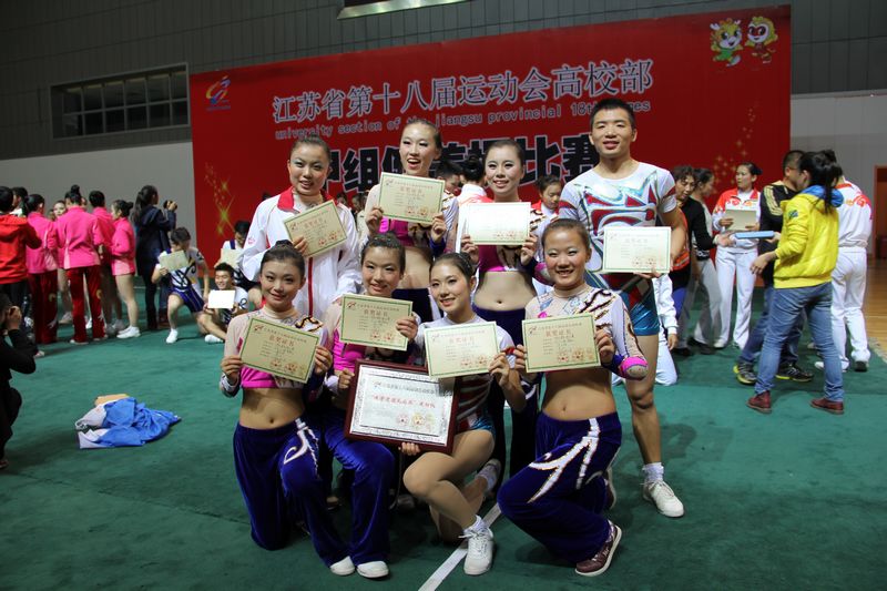 11月8日至11日,江苏省第十八届运动会高校健美操赛在中国药科大学江宁分校举行,校大学生健美操队的8名队员在王佳玥、薛敏老师带领下,参加了本届高校健美操(甲组)比赛。本次比赛共28所高校参加,四天的比赛中展开了激烈角逐,整个比赛精彩纷呈,动作的挥洒与阵容的变化 绽现出无限的青春与激情,给观众以强烈的震撼。
