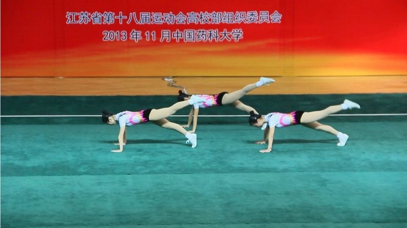 在取得成绩的背后,凝聚着队员们平时辛苦训练和教练不厌其烦指导。早在今年的暑假期间,教练和队员们放弃了休息时间开始了健美操集训。除了上课,不论双休还是节假日,去健美操馆训练成了队员们全部,经常是一练就是一整天。王佳玥和薛敏老师为了兼顾训练和照顾家庭,经常在双休日把没人照看的孩子带到训练场一起训练。队员经常是克服重重困难坚持训练,腿拉伤了就练手,手腕伤了就练腿。有付出就有回报,在教练和队员集体努力下,校大学生健美操队获得了自成立以来有所突破性的佳绩,为江苏省十八届高校健美操比赛画上了一个圆满句号。