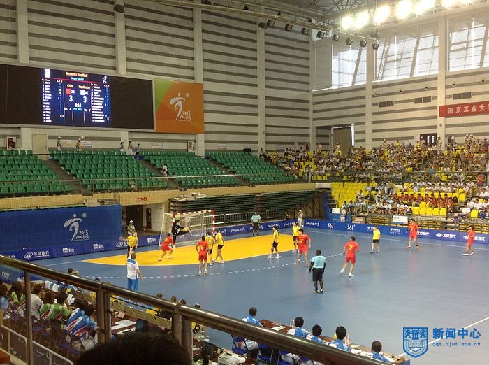 8月20日下午,我校江浦校区体育馆内,中国对哈萨克斯坦的女子手球赛正激烈的进行着。