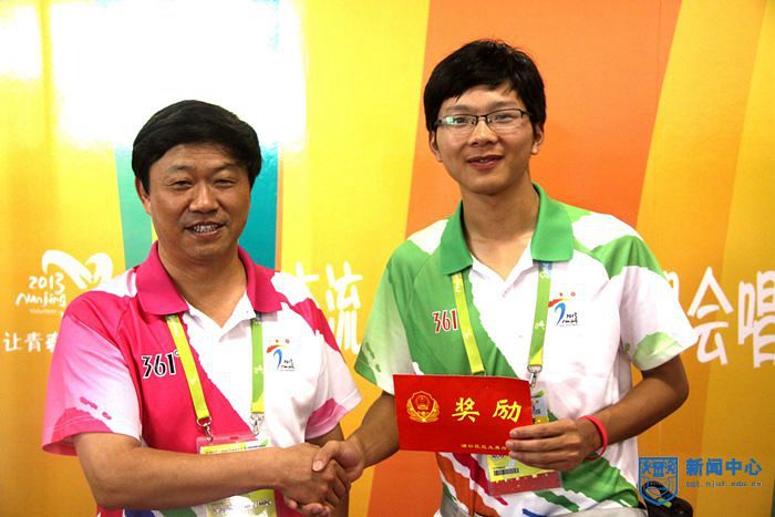 8月23日,校党委副书记高明、工大手球场馆秘书长张天峰、工大手球场馆副主任(安保)鲁彪、工大手球场馆副主任(志愿者)蒋仲群莅临工大手球馆志愿者之家,为拾金不昧的优秀志愿者曹钦颁发奖金。高副书记说,曹钦同学的行为展示出新一代大学生的精神风貌,更展示了志愿者爱心奉献的高尚情怀。