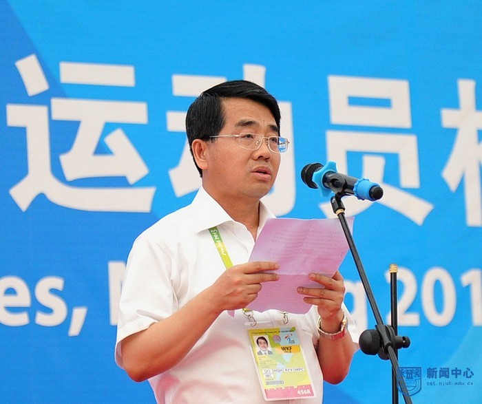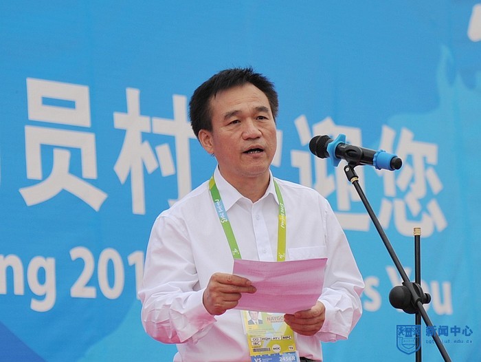南京市委副书记、运动员村村长靳道强感谢南京工业大学的大力支持和广大大学生志愿者的辛勤劳动。