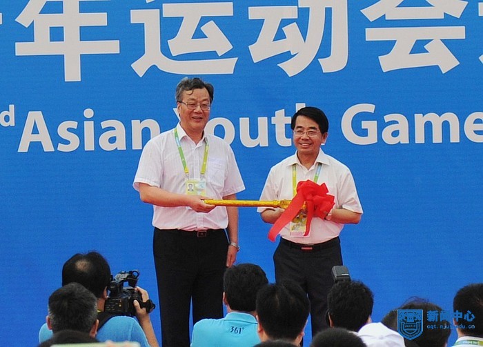 闭村仪式上,亚青组委常务副秘书长戚鲁,南京市委副书记、运动员村村长靳道强充分肯定了亚青会运动员村的工作,尤其感谢南京工业大学的大力支持和广大大学生志愿者的辛勤劳动。我校校长、运动员村执行村长黄维院士感谢广大亚青村工作人员和大学生志愿者们的辛勤付出,并表示将以亚青村的成功运行为契机,进一步提升学校的管理水平,增强学校的知名度与美誉度。随后,南京市委副书记、运动员村村长靳道强向我校校长黄维院士移交钥匙。