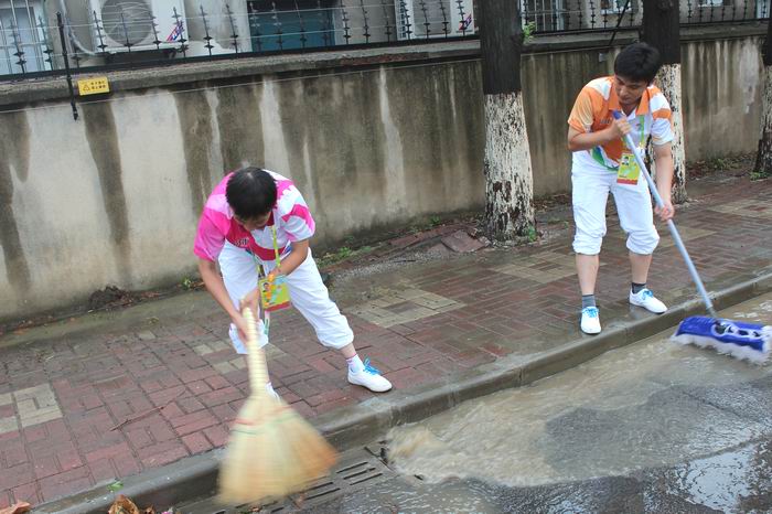 挥汗如雨,誓保场外畅通