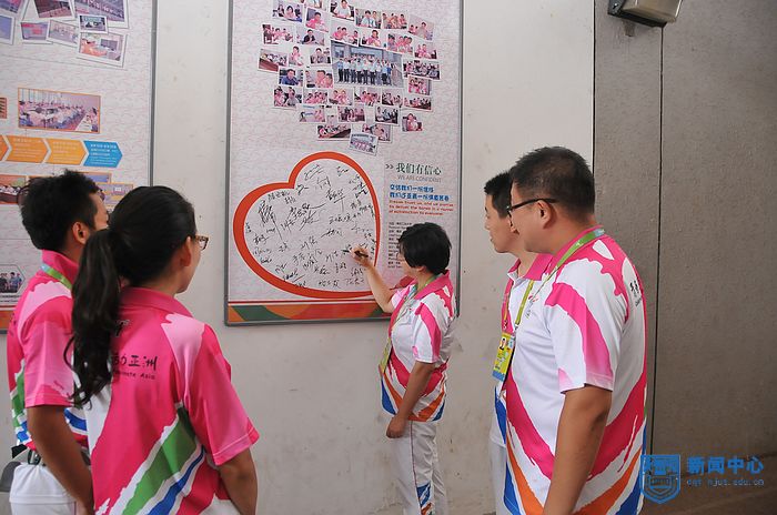 正如此次签名接力的主题“交给我们一份信任、我们还亚青一份满意答卷”,南京工业大学体育馆场馆团队成员充满信心地表示“亚青来了,我们准备好了”。简短的签名接力活动结束之后,大家匆匆赶往各自岗位,投入到紧张而又有序的工作中。