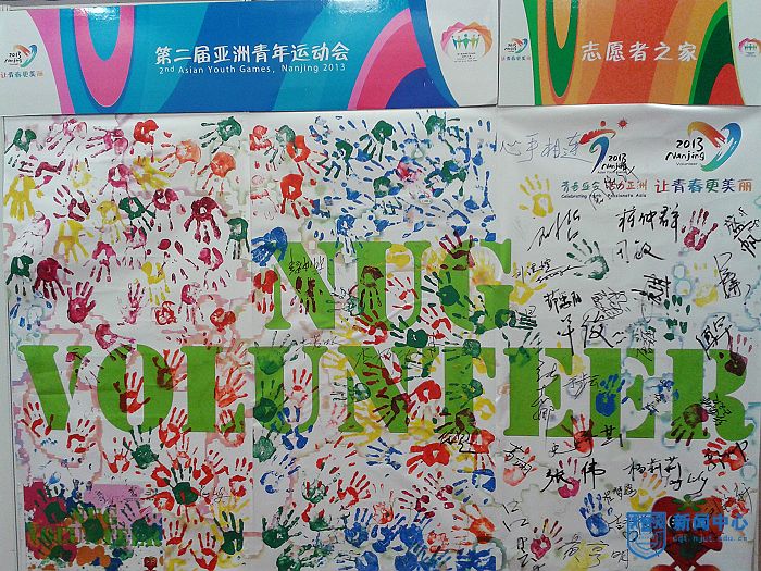 8月12日,手球比赛正式开始的前一天,我校手球馆的青柠们相聚志愿者之家,在场馆(志愿者)副主任蒋仲群、志愿者经理杨勇明、志愿者之家主任刘哲带领下,纷纷在特别设计的“NUG——VOLUNTEER”log周围留下五彩美丽的掌印,用自己的双手绘画出“心手相连”的手印创意海报墙,为明天正式开赛的手球比赛送上祝福。