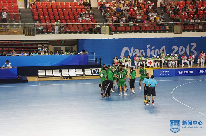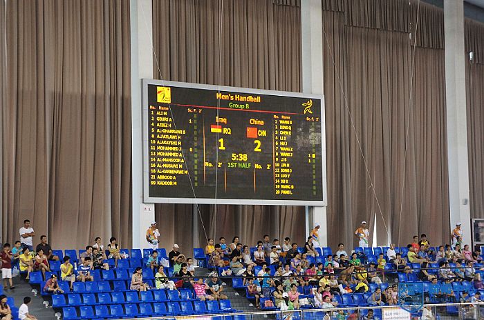 大家盼望已久的南京亚青会工大场馆手球比赛终于按照原定时间:8月13日中午12:00开赛,首场比赛由沙特阿拉伯队对阵蒙古队,接着又进行的三场比赛分别为:叙利亚队对阵哈萨克斯坦队、伊拉克队对阵中国队、韩国队对阵香港队。最后一场比赛一直进行到19点才结束。精彩的比赛吸引了众多的江浦中小学生,他们在家长陪同下前来观看,这些观众当中极大多数还是第一次到现场享受那国际性的重大赛事,看到他们脸上露出那欢快笑容,工大手球团队参与赛事组织的同志和大学生赛事志愿者感到无比的欣慰。