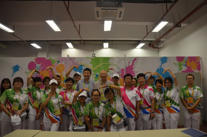 比赛结束后,在志愿者引领下,魏纪中主席、王德明书记等一行参观了志愿者之家。在听取亚青会南京工业大学体育馆场馆团队志愿者副主任蒋仲群先生简要汇报后,魏主席指出,志愿者之家文化建设很有特色,志愿服务开展得也不错,并鼓励手球小青柠抓住机会,在历练中成长!魏主席、王书记愉快接受了志愿者赠送的微笑手环,并与换岗的志愿者合影留念。(来自体育部)