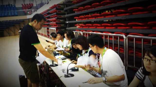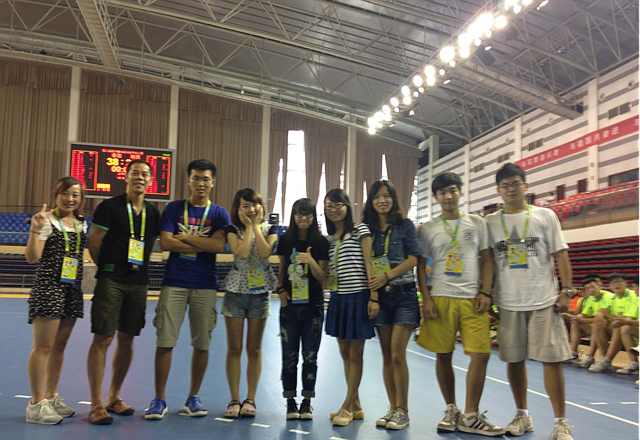 7月25日,亚青会工大手球竞赛团队联调联试活动,让体育展示组志愿者第一次感受到了大型赛事的比赛氛围,虽然比赛不是最激烈,但对于体育展示小组来说,因为是第一次联调,志愿者们开始心理上有点紧张,担当播音员的志愿者,播出的声音有些颤抖,担当音响师的志愿者,眼睛时刻不离赛场,生怕错过队员进球时播放音效,作为助导的志愿者更是忙得顾不上吃饭,因为比赛现场时刻需要作调整的指令。担任手球体育展示志愿者来自于中国传媒大学南广学院。 为了第一次联调联试,他们一大早就从学校出来,所在学校附近的公交还没有运行,他们不得不想办法克服,没有一人表现有怨气。