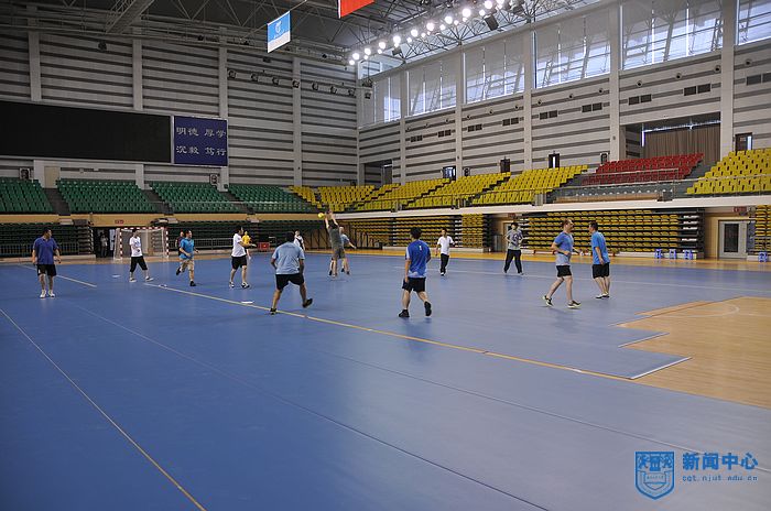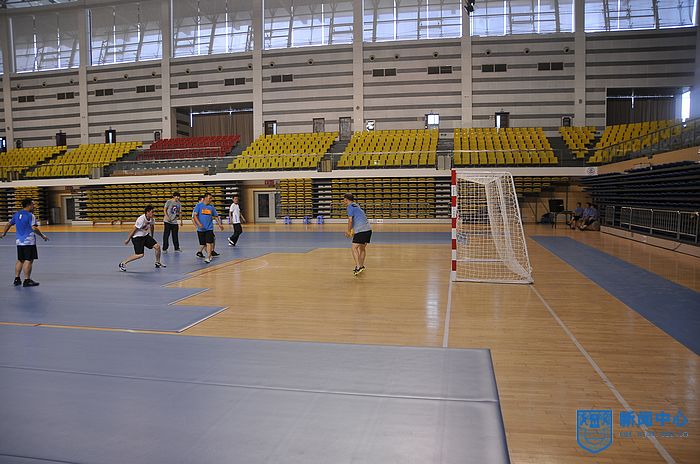 7月17日上午,亚青会手球项目首次竞赛联调测试在我校体育馆举行。