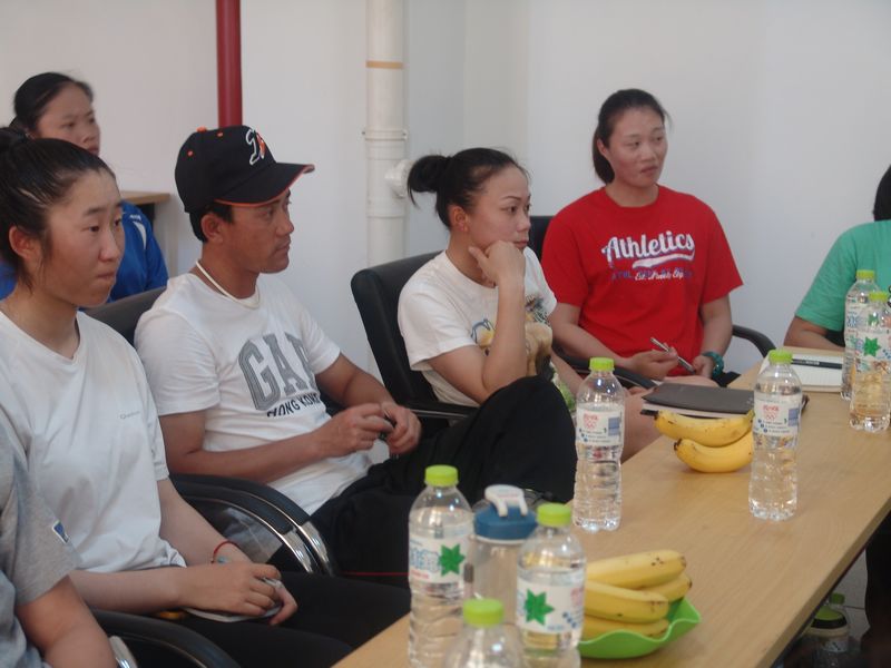 首先,垒球队运动员代表结合各自实际,分别回顾和总结了前阶段训练和参赛情况,针对队伍和运动员自身不足,从主观上查找了比赛中所暴露出来的问题,并表达了下阶段在主教练宋秋元的率领下,坚持顶着高温,参加训练的坚强决心。多位队员发言后,宋秋元主教练从四方面提出了要求:一是要珍惜,分三个阶段安排好最后训练,希望全体队员认真地对待每堂训练课,投好和击好每一个球。运动员有机会参加三次全运会,表明了大家都很优秀,从第十届全运会第六、到第十一届全运会第三,再到今年九月第十一届全运会,队伍经过了十多年努力,应该有更高目标,也有机会、有实力冲击新的目标,因此一定要珍惜一生中难得机遇。二是要严谨,在平时训练、生活、行为习惯上做到严谨,这是队伍取得胜利的基础,更是江苏女垒高素质的体现。三是要努力,从训练方法和手段上加以研究,及时调整好心态,每位队员都应高度重视训练的过程。四是要结果,如果说前二次目标的实现,使队伍从生存走向了全国应有的位置,那么第十二届全运会目标的实现,更是一种严峻挑战,证明江苏队的实力。副领队刘峰在充分地肯定垒球队员前阶段表现的同时,对今后五十天里提出了希望,要求大家做到:安心训练、积极上进、团结拼搏、言行一致、自觉遵守、自信坚定。