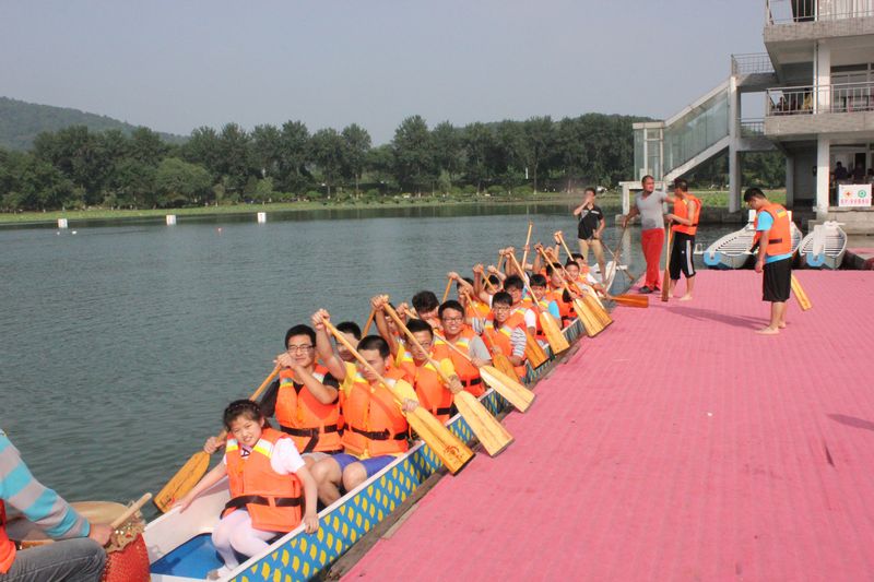 本次训练分为两部分。主要有岸上划桨姿势练习,水上划桨练习。岸上划桨姿势练习主要分为:握桨姿势、坐姿、划桨姿势及力度。由于岸上划桨练习是划龙舟的基础,所以在这个环节每个成员学习非常认真。水上划桨练习主要分为:划桨姿势、划桨力量及团队配合。水上划桨练习是划龙舟的主要环节,必须有团队配合,每个成员必须尽最大努力去学习划龙舟的各个动作要领。