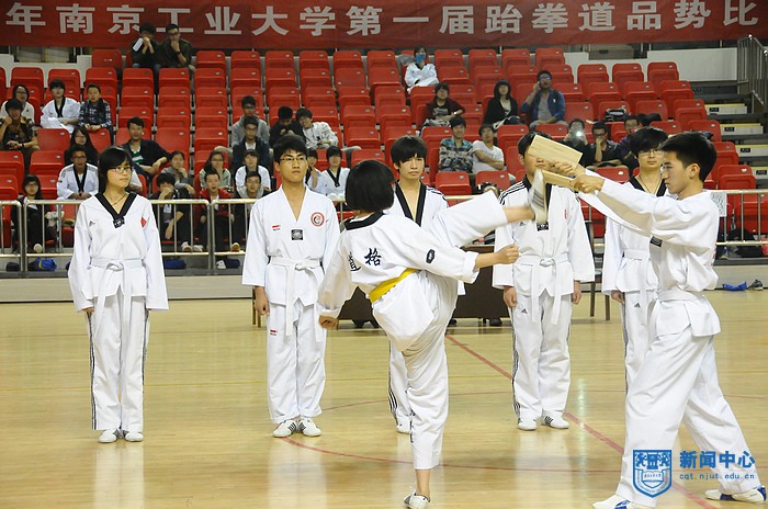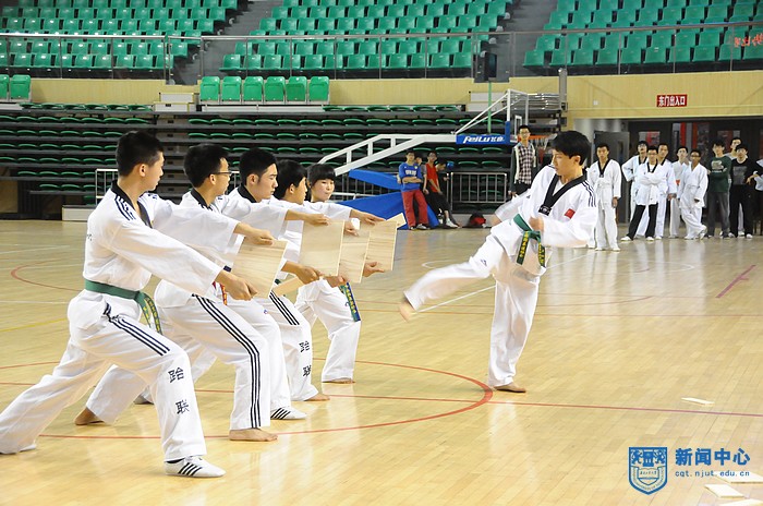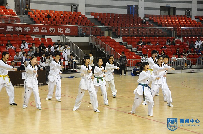 5月9日晚,由校体育部主办,校学生跆拳道俱乐部承办的校第一届跆拳道品势比赛,在江浦校区体育馆隆重举行。校体育部党总支书记陈建华、副主任孙欣荣,执行主任赵飞出席了比赛。体育部章璐璐老师担任总裁判长,杜寿高、王鸣骏老师担任了副总裁判长,颜耀春、张海涛、陈晓霞、严燕、薛敏老师担任裁判员。张文颂老师负责队伍的检录工作。整个比赛由体育部李佳静老师策划和组织。来自经管学院、土木学院、材料学院等17个学院代表队参加了比赛。比赛共分为:团体比赛、特技比赛、个人比赛、其他品势比赛和集体比赛。