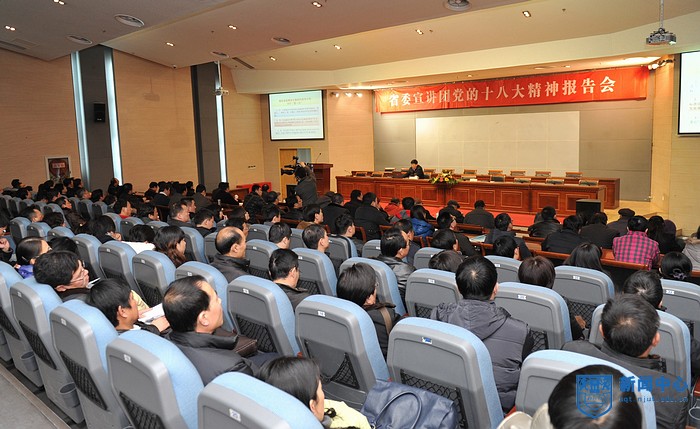 12月10日下午,按照省委统一部署,省委宣讲团党的十八大精神报告会在我校逸夫图书馆一楼报告厅召开。江苏省委教育工委副书记、省教育厅副厅长胡金波同志为我校师生做《认真学习贯彻党的十八大精神,开启江苏教育现代化的新征程》宣讲报告,会议由校党委书记王德明主持,全体校领导,中层干部,各民主党派、侨联负责人,各级人大代表、政协委员,离退休老同志代表,思想政治理论课教师,全体辅导员,学生骨干参加会议。