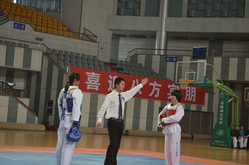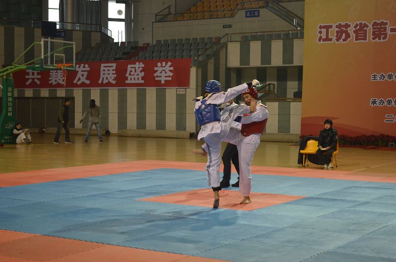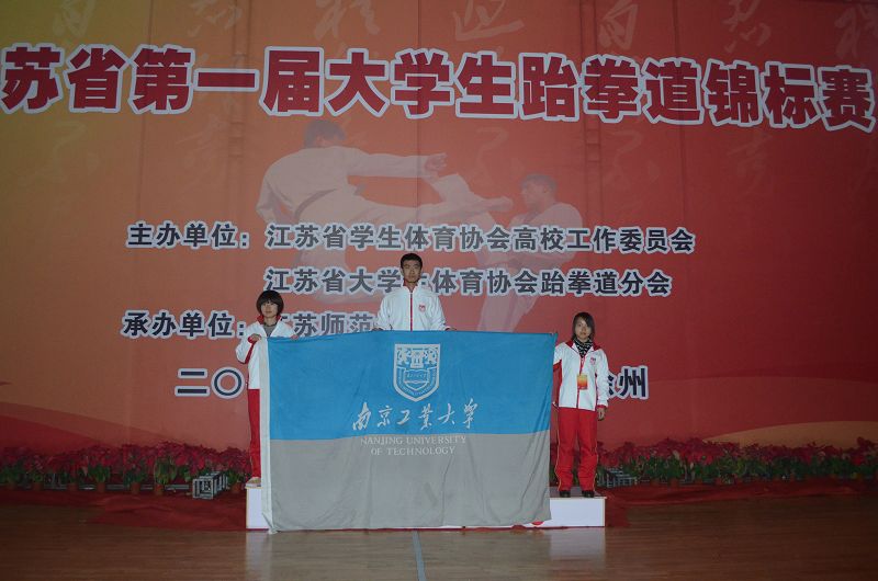 11月24日,江苏省第一届大学生跆拳道锦标赛在徐州市江苏师范大学隆重举行,我校刚组建不久的大学生跆拳道队在体育部李佳静老师带领下参加了此次大赛。我校跆拳道队队员社工1002班曹书书、营销1101班王海月、浦电气1105班刘凡分别荣获女子乙组47公斤级第二名、女子乙组51公斤级第三名、男子乙组72公斤级第三名的佳绩,同时我校跆拳道队获女子乙组团体第八名。