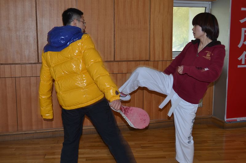 我校跆拳道队组建仅一个月,只有三名队员和一名教练。三名队员都只是业余练习过跆拳道,从未进行过正式的实战训练。在一个月训练中,队员们努力调整学习与训练时间,凡是空余时间,无不用在了训练上。三名队员虚心好学、求知若渴,曾不辞劳苦前往南京信息工程大学向刘教练及其学生学习实战技巧与经验。比赛前,三名队员十分紧张,李老师鼓励道:“此次比赛我们最重要的目的就是学习、增长经验。一个月的仓促训练大家都已很努力,只要拼搏过了,结果是好是坏,我们都不会后悔!”