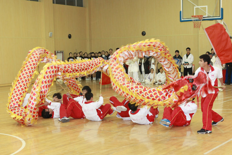 龙狮俱乐部的《烈焰龙腾》在道具上揉合了红旗,并且利用红旗的各式旗语和舞龙的各式章法,给人一种全新的视觉享受,而浦江学院的《跳出快乐和幸福》则叫人们看到了体育场上的诙谐和幽默,技巧俱乐部的自编技巧《奇迹》,利用托举、罗汉等多种运动技能,把一群团结拼搏的年轻人的那种迎接挑战,战胜自我的内心完满呈现。最终经过评委们的认真评判,信息学院、浦江学院、土木学院获得甲组前三名,武术俱乐部、技巧俱乐部获得了乙组前二名,拉拉操俱乐部和龙狮俱乐部并列第三名。