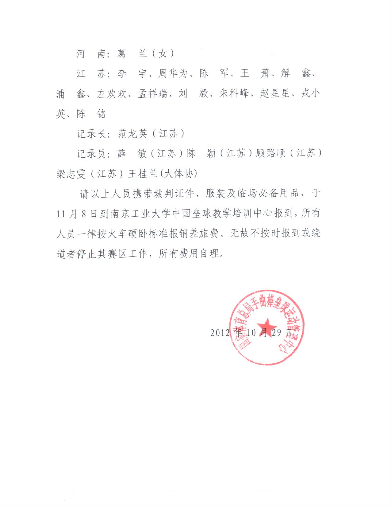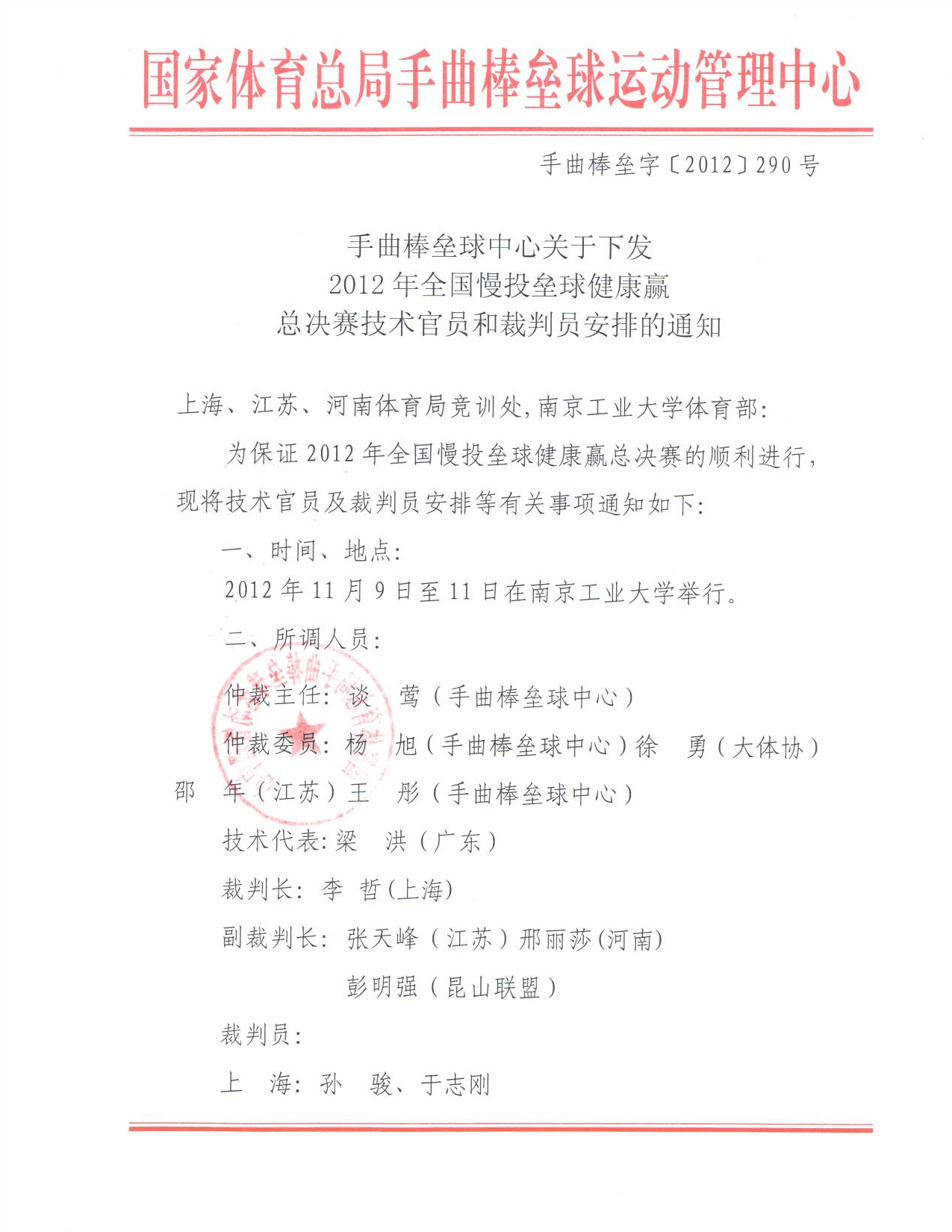 手曲棒垒球中心关于下发2012 年全国慢投垒球健康赢总决赛官员和裁判员安排的通知