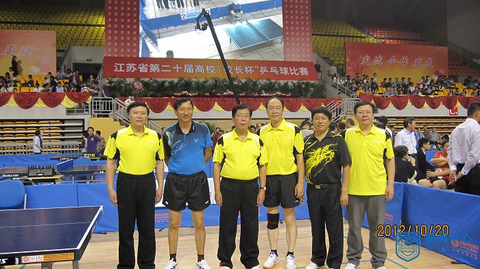 由江苏省教育厅主办、常州大学承办的江苏省第二十届高校“校长杯”乒乓球赛,于10月20日至21日在常州大学隆重举行。我校代表队在校党委书记王德明的率领下,经过校领导孙伟民、朱跃钊、高明、乔旭、蒋军成的不懈努力和顽强拼搏,以小组第二的身份进入第二阶段比赛,最终取得了第十六名的成绩,这是近七年来我校参赛取得的最好成绩。通过比赛,加强了与兄弟高校的联系和交流,显示了我校领导关心体育、热爱运动,并带头参加体育比赛的精神风采。