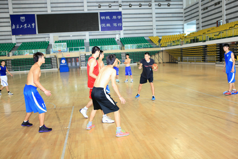 继一周前特邀江苏青年男子篮球队教练龚毅先生来校指导后,今天龚毅教练再次应邀来到江浦校区体育馆,对我校男子篮球队在进攻战术方面进行指导。经过近三个小时系统周密的传授和高强度严要求的对抗,训练效果得到了从教练到全体队员的一致肯定。