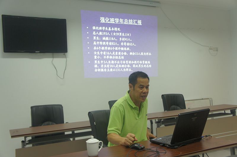 7月4日下午,体育部在常州市体育运动学校召开了“体育教学科研研讨会”,体育部党总支书记陈建华为大家精心准备了“重视科学研究,提升可持续发展能力”专题报告,报告中陈书记结合自身实践,从“加强学习,提高认识,激发兴趣,内化行为;抓住热点,着眼于岗位,勤于思考,选择主攻方向;注意积累,坚持不懈,起点目标高,关注期刊动态”等方面向各位教师谈了搞好体育科研工作体会,旨在与大家交流,起到相互促进,共同成长作用。颜耀春副教授代表强化班教学团队,结合我校体育课强化班教学改革的实践,运用详细的调查数据,进行了对比分析,向老师们介绍了体育课强化班教学的实施效果和存在不足,充分地显示出了他在平时工作中善于思考和总结,起到了示范作用。体育部张天峰主任结合省教育厅最近召开的高校体育部主任会议精神,围绕着体育课程评估的若干重要指标及教育厅对高校体育教育教学总体要求和大学体育发展趋势,提醒全体同志增强危机意识、责任意识和竞争意识,努力改变自身存在的不足,充分地利用现在条件和发展机遇,团结一心,发扬主人翁精神,共同把学校体育工作做得更好。