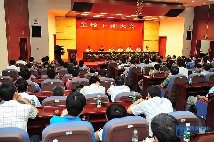 7月20日下午,我校在丁家桥校区创新大楼5楼报告厅召开全校干部大会。会议宣布了中共江苏省委关于我校行政主要领导任免的决定。省委组织部副部长、省国资委党委书记赵永贤,省教育厅副厅长、省委教育工委副书记(正厅级)胡金波,省委组织部干部五处处长梅仕城,省委教育工委组织处副处长施星国以及我校党政领导班子全体成员出席会议。学校中层以上干部、各级人大代表、政协委员、民主党派负责人、校级老领导及正高职人员代表参加会议,校党委书记王德明主持会议。