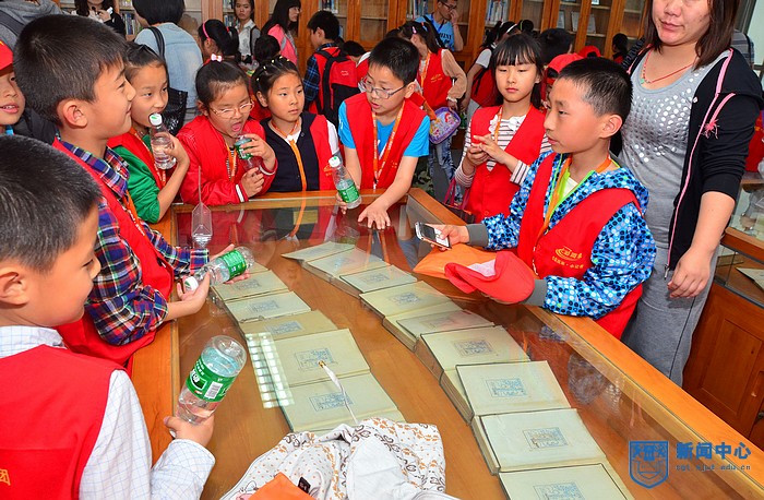 校车载着大家来到逸夫图书馆。在图书馆前,小记者们和我校的老师、校报记者、常青藤和迅影工作组的同学们愉快地合影,留下了友谊的见证。随后,小记者们安静地排好队,有秩序地进入图书馆参观。在特藏室里,他们在仔细浏览了那些或泛黄或崭新的珍贵的文献典籍后,表示要好好学习,以后也要有自己的学习成果。